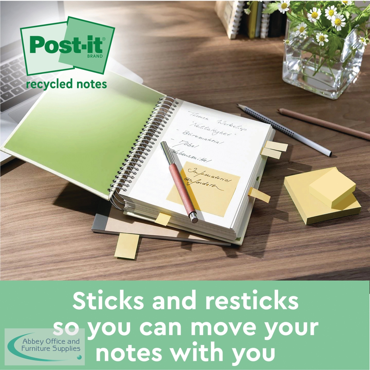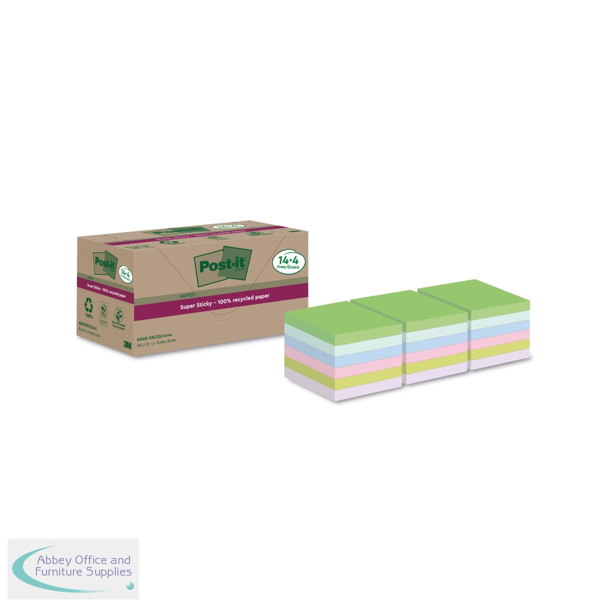3M06089 - Post-it Super Sticky Recycle 76x76mm Cardboard Packaging Yellow (Pack of 18) 654 RSSCY 14+4F