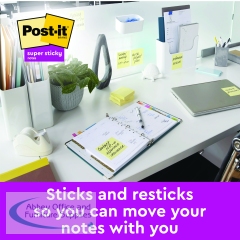 Perfect for important notes, messages and reminders on vertical or hard to stick surfaces such as computer monitors, doors and walls, these repositionable Post-it Notes feature Super Sticky adhesive for a stronger, longer hold. Made from 100% recycled paper, each pad contains 70 sheets and measures 76 x 76mm. This pack contains 18 pads in Canary Yellow.