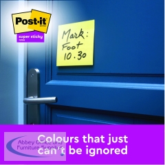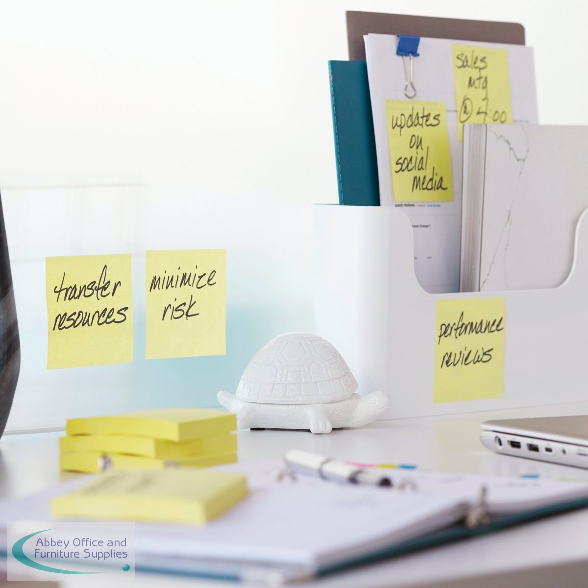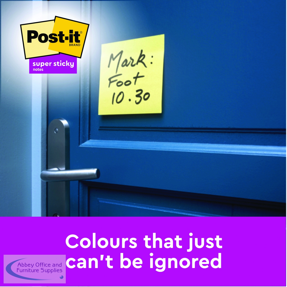 The most convenient way to instantly make a note, send a message or leave a reminder, these super sticky notes are perfect for vertical or hard to stick surfaces such as computer monitors, doors and walls. They hold stronger and last longer with twice the sticking power compared to Post-it Original notes. Made from PEFC certified paper and packaged in recycled cardboard which can be used to store the notes, and then be recycled when no longer needed. Download the free Post-it App to instantly capture and save your work so you can share notes with your team.