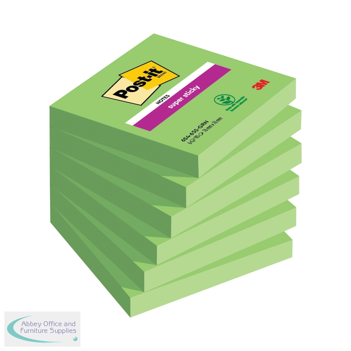 3M80865 - Post-it Super Sticky Notes 76x76mm 90 Sheets Green (Pack of 6) 654-6SS-GRN