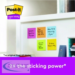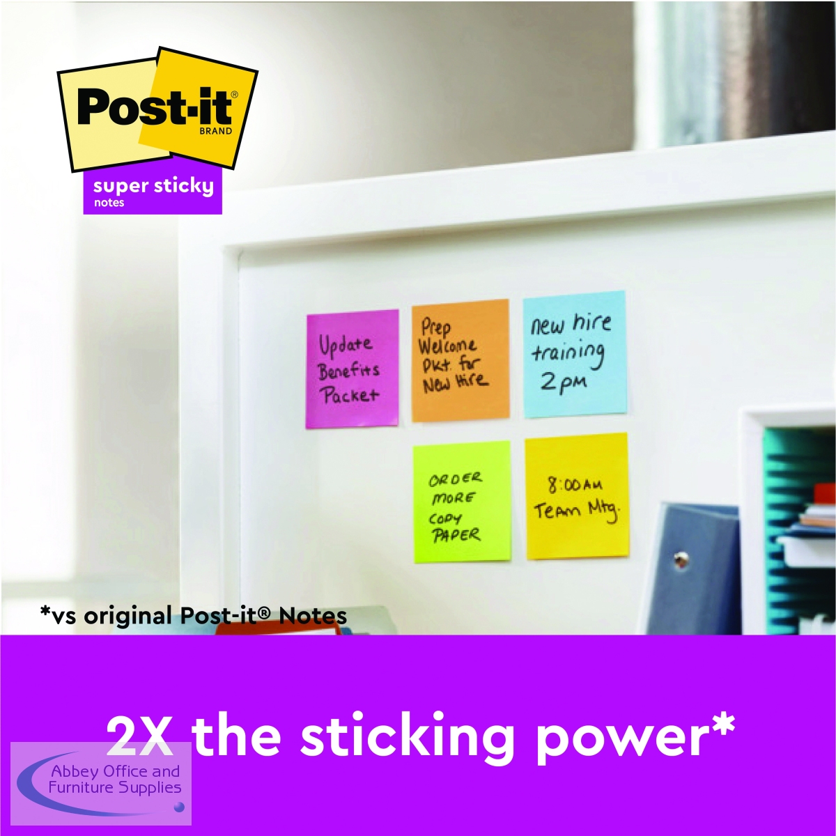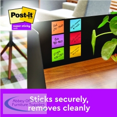 The most convenient way to instantly make a note, send a message or leave a reminder, these super sticky notes are perfect for vertical or hard to stick surfaces such as computer monitors, doors and walls. They hold stronger and last longer with twice the sticking power compared to Post-it Original notes. Made from PEFC certified paper fibres from sustainably managed forests and controlled sources. Download the free Post-it App to instantly capture and save your work so you can share notes with your team.