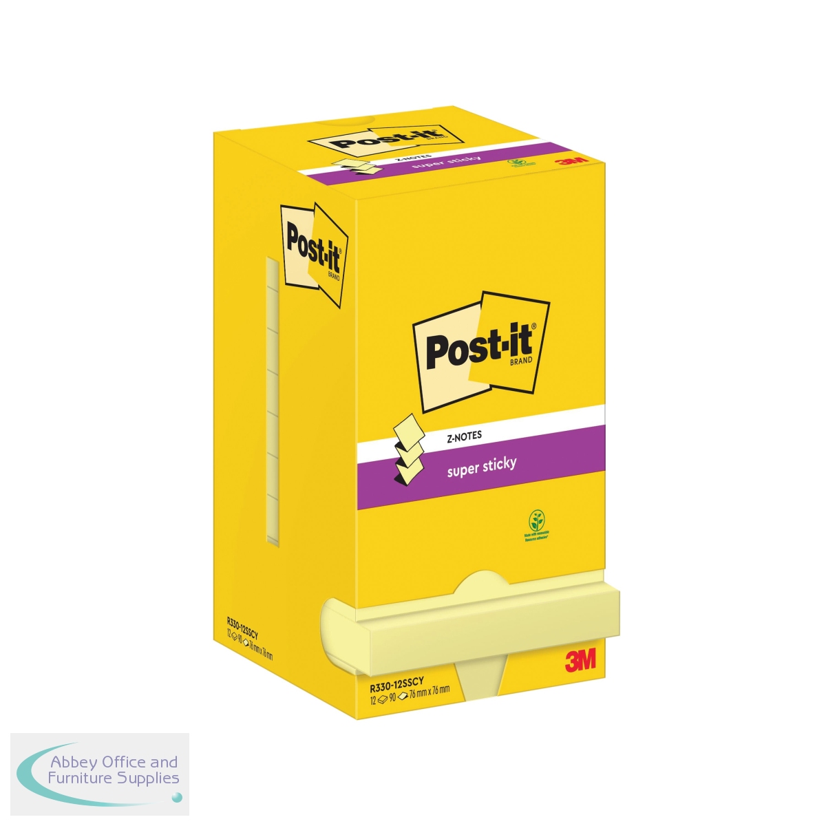 3M06557 - Post-it Super Sticky Z-Notes 76x76mm 90 Sheets Cardboard Packaging Yellow (Pack of 12) R330-12SSCY