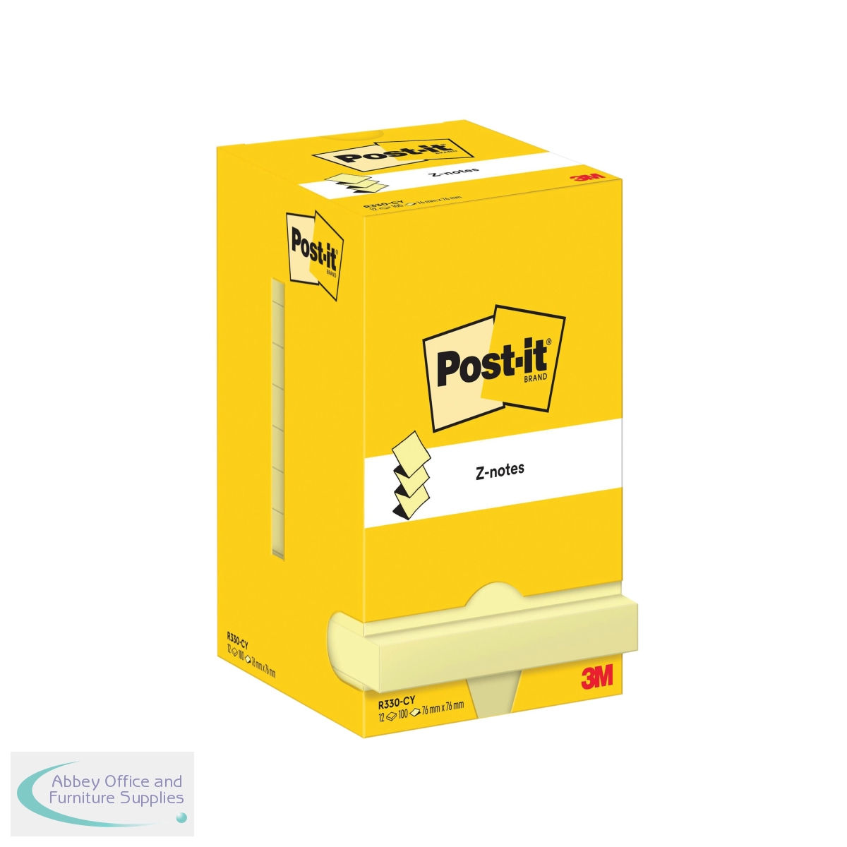 3M06566 - Post-it Z-Notes 76x76mm 100 Sheets Cardboard Packaging Canary Yellow (Pack of 12) R330-CY