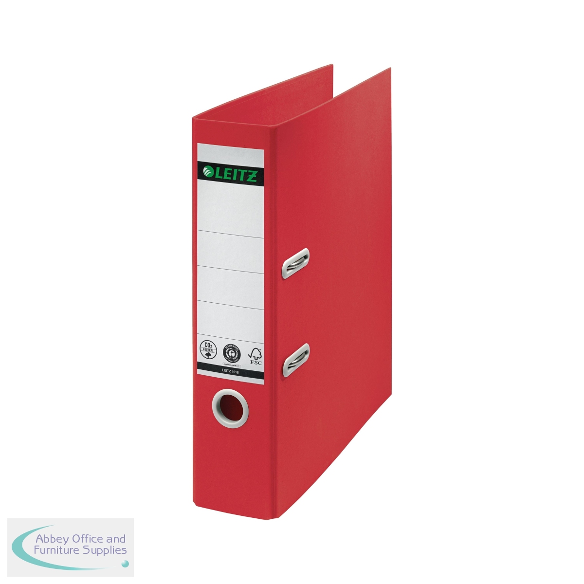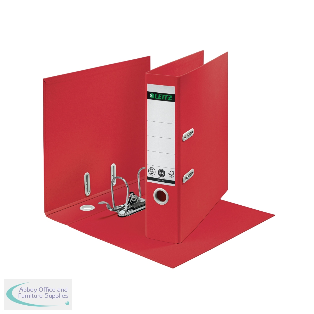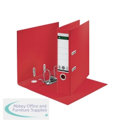 These eye-catching, premium quality, lever arch files are made from recycled materials which can be disassembled and fully recycled. The environmentally friendly Recycle range from Leitz is climate neutral, 100% recyclable and certified Blue Angel. This robust, 80mm wide, lever arch file in red, complements other products from the Leitz Recycle range and is made to last. Suitable for A4 documents, this modern and contemporary stationery will look great at home and in the office. Supplied in a pack of 10.