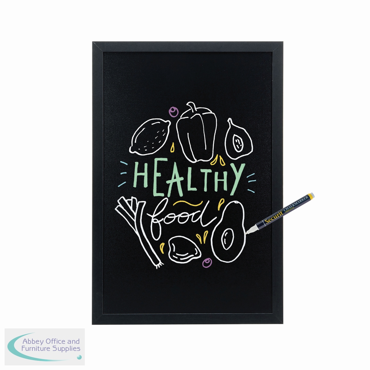 DF49479 - Securit Woody Chalkboard with Chalk Marker and Mounting Kit 400x15x600mm Black WBW-BL-40-60