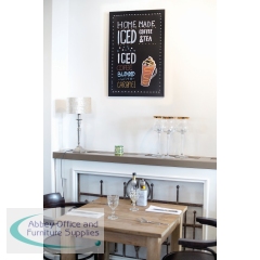 The Securit Woody Chalkboard is a great way of creating a unique, trendy and effective display or interior decoration. The double-sided writing surface can be easily cleaned. This 40x60 wallboard with a black wooden style frame comes with mounting hardware. Update messages using the included white Securit Original Chalk Marker.