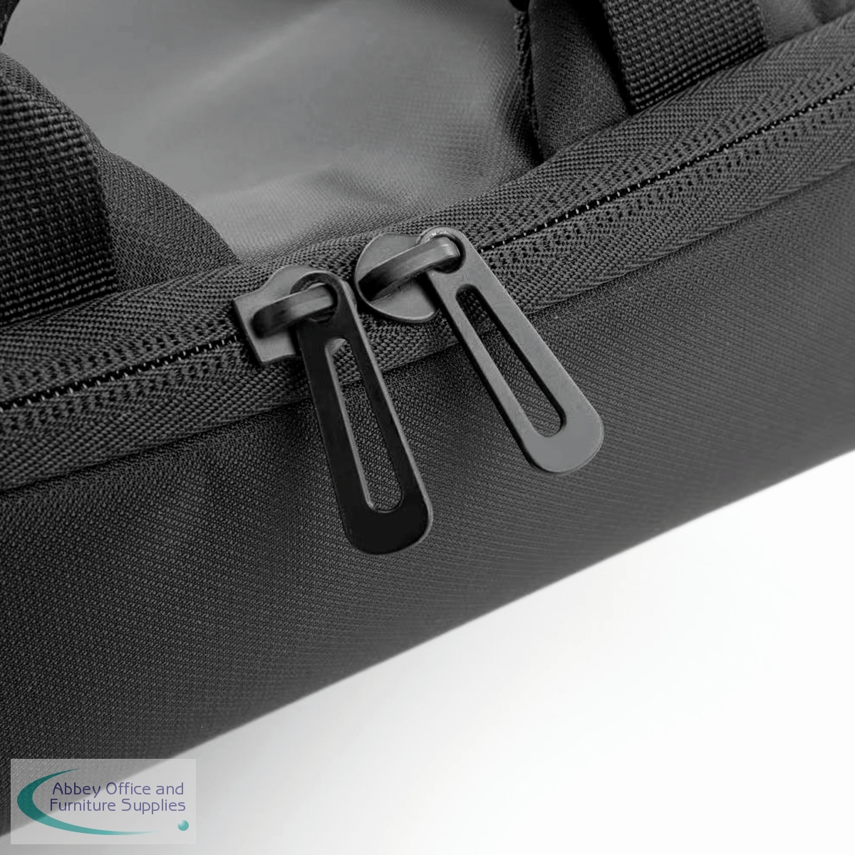 Gino Ferrari Vertex 15.6 Inch Laptop Backpack provides you with a stylish section and an organiser section. This backpack has a padded adjustable shoulder strap and a padded top handle. The backpack is cabin friendly for most major airlines. The Vertex is manufactured from recyclable ecotec materials with self-repair zips.