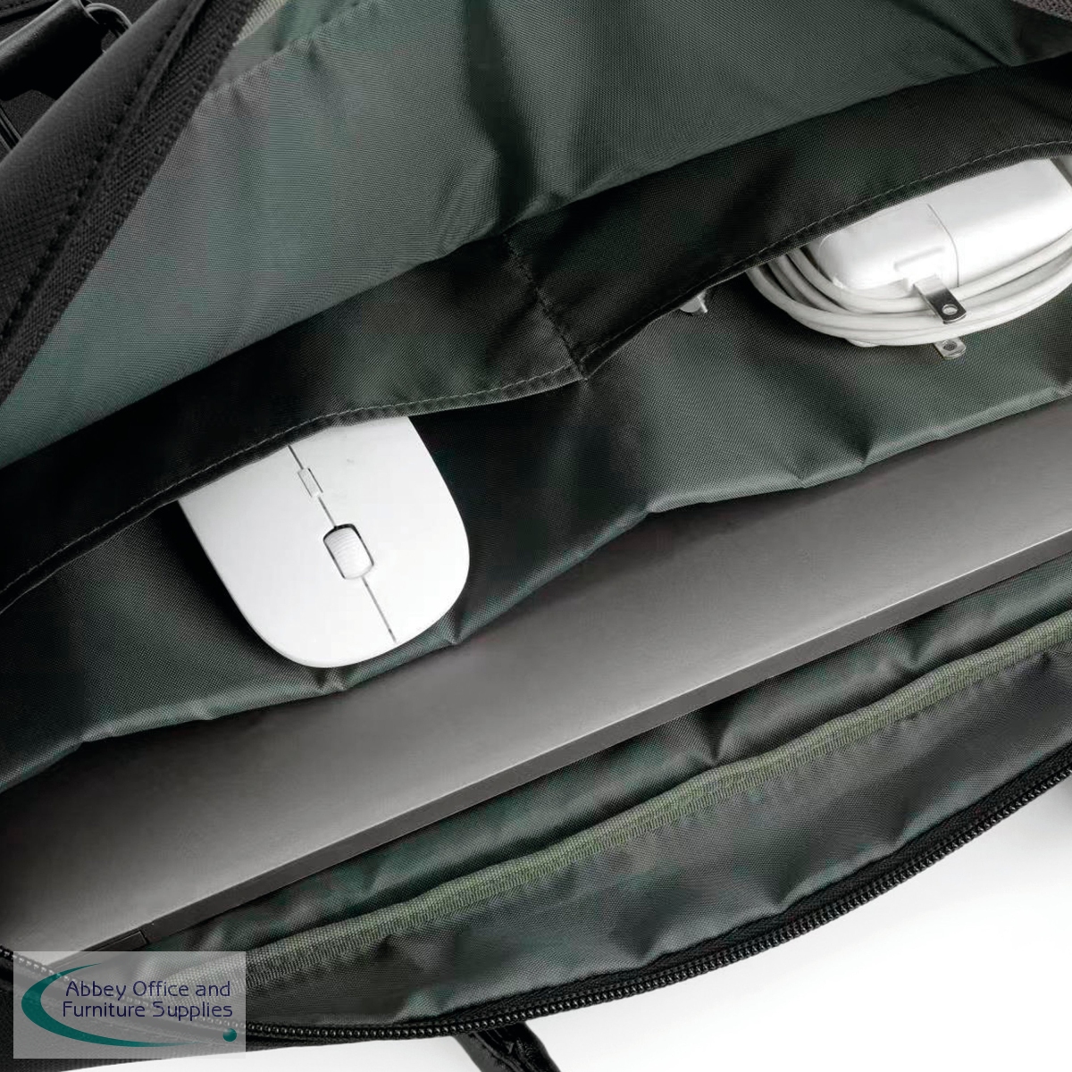 Gino Ferrari Apex 15.6 Inch Laptop Business Bag has a protective laptop section and an organiser section. The business bag has padded back and shoulder straps and a padded top handle. The bag is cabin friendly for most major airlines. The Apex is manufactured from recyclable ecotec materials with self-repair zips.