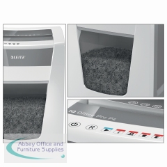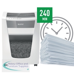 The Leitz IQ Office Pro Cross-Cut Shredder offers the ultimate in style, performance and security, this model features Security DIN P-4 cut for outstanding document security and peace of mind. High quality, security and excellent performance with this anti jam, quiet and long running shredder. The Leitz IQ shreds up to 20 sheets of A4 paper (80gsm) into 4x40mm cross cut pieces allowing more in the generous 30L bin with simple operation using touch controls. Shred for longer with a leading 4 hour run time, for a completely uninterrupted shredding experience.