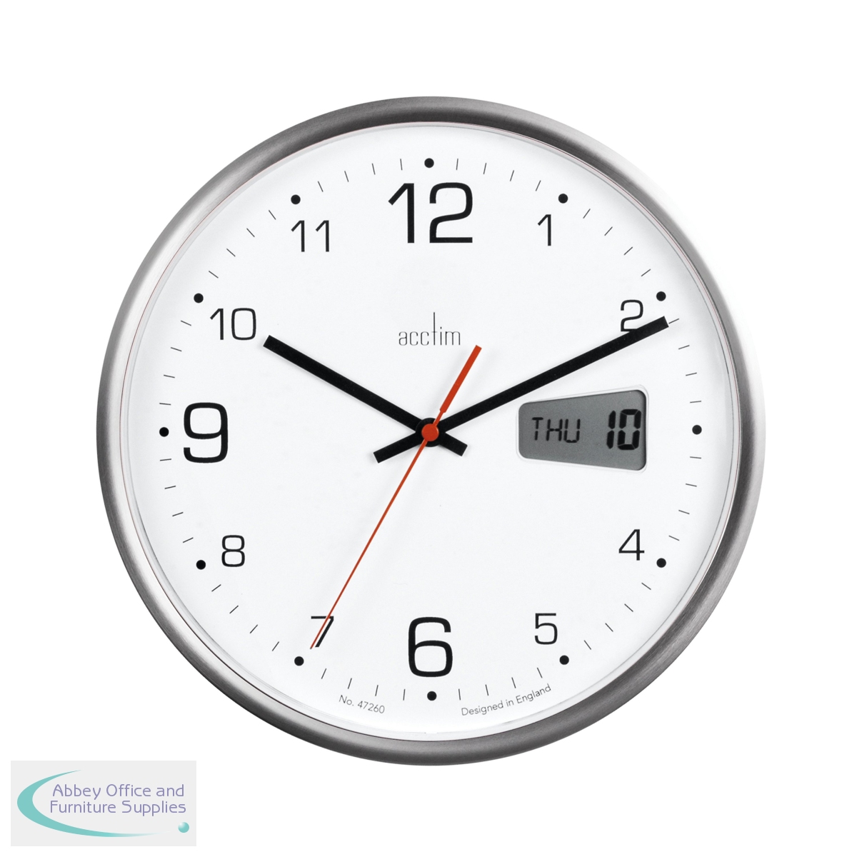 ANG22367 - Acctim Kalendar Wall Clock with Digital Date 270mm Diameter Silver Frame 22367