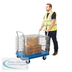 GA74467 - Proplaz Mesh Sided Platform Truck with Hinged Lid and Half Drop Side 300kg Capacity PPU24Y