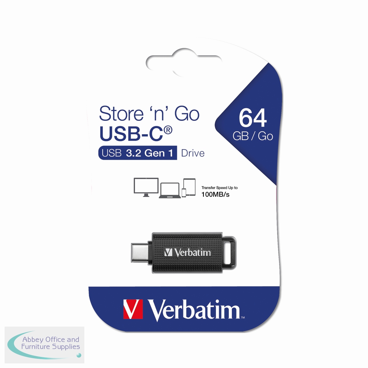 VM49458 - Verbatim Store n Go USB-C 3.2 Gen 1 Flash Drive 64GB ABS Black 49458