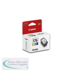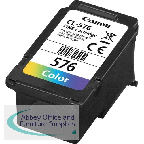 The Canon CL-576 colour ink cartridge is a combined cyan, magenta and yellow ink FINE cartridge. For printing photos and colour documents. This genuine Canon ink cartridge ensures crisp, sharp images and photos. This 6.6ml cartridge can print up to 100 pages of A4 documents.