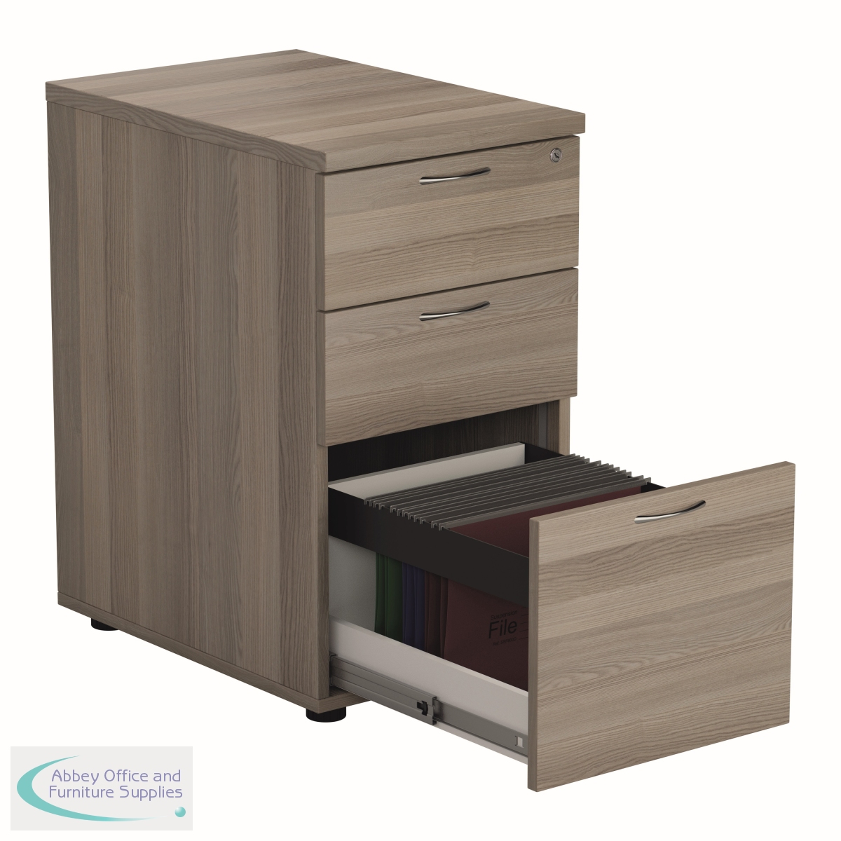 KF822671 - Jemini Radial Left Hand Desk 1600x800-1200x730mm Grey Oak/Silver 600mm Desk High Pedestal KF822671