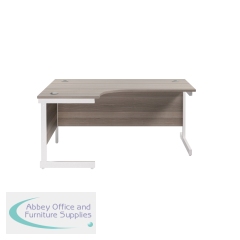 KF822701 - Jemini Radial Left Hand Single Upright Desk 1600x800-1200x730mm Grey Oak/White KF822701