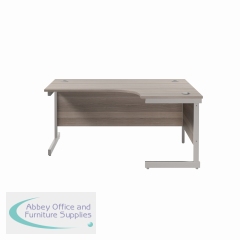 KF822711 - Jemini Radial Right Hand Single Upright Desk 1600x800-1200x730mm Grey Oak/Silver KF822711