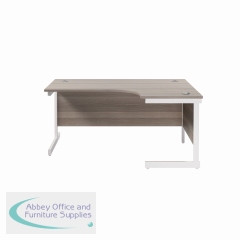 KF822722 - Jemini Radial Right Hand Single Upright Desk 1600x800-1200x730mm Grey Oak/White KF822722