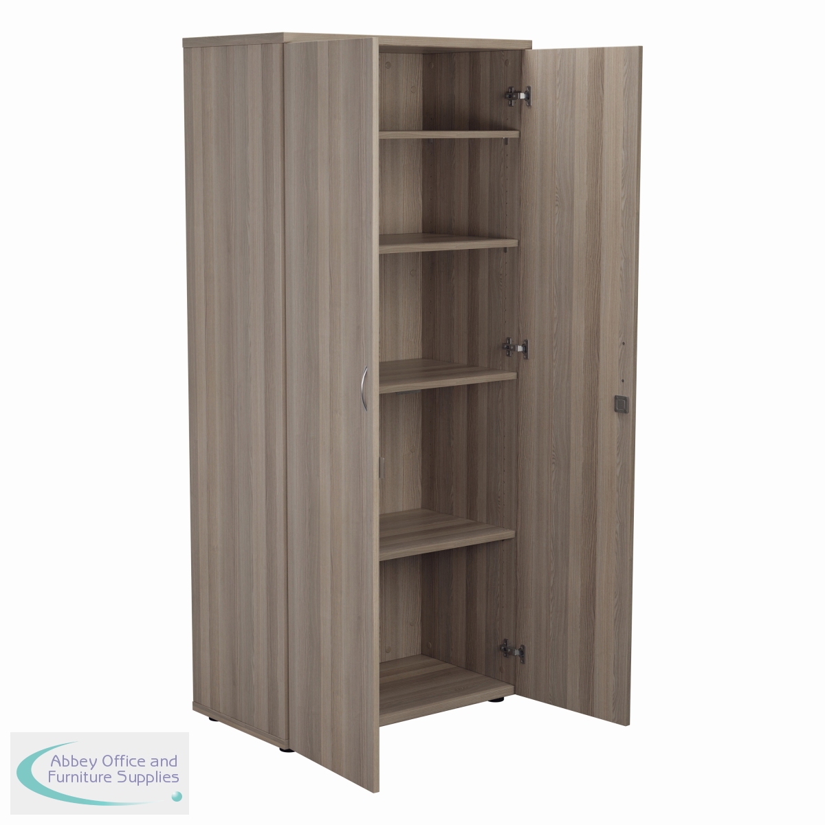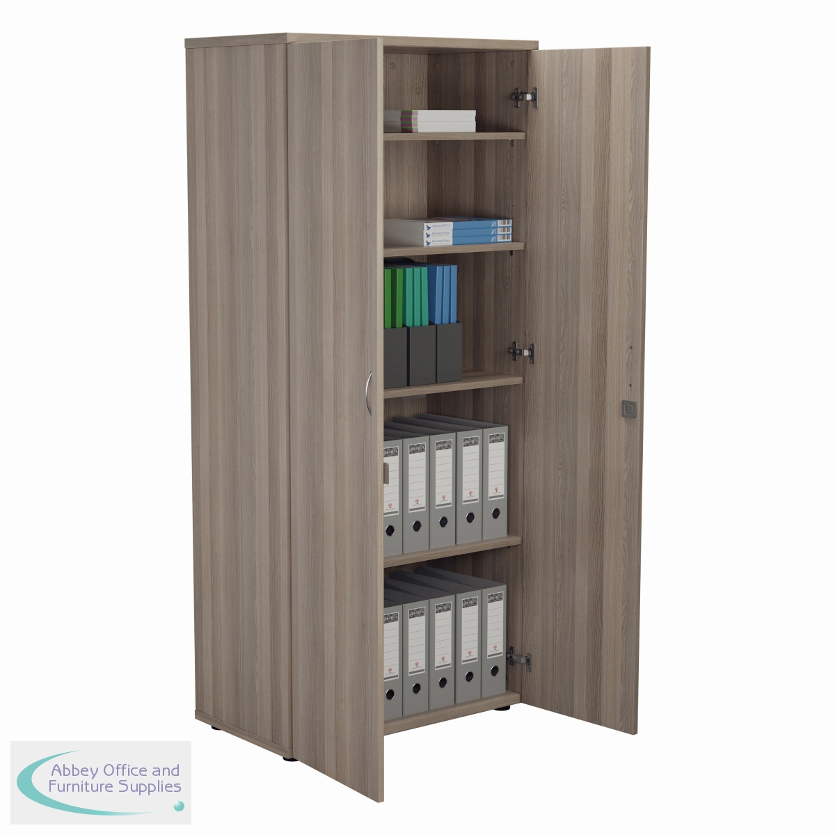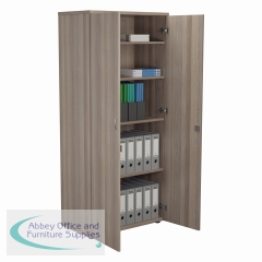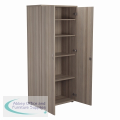 This Jemini Cupboard provides a convenient storage solution for organised office filing. Complete with lockable doors to protect your valuable files or possessions. With a one-piece MFC back panel and one shelf. The cupboard measures 800 x 450 x 1800mm and comes in a grey oak finish to complement the Jemini furniture range.