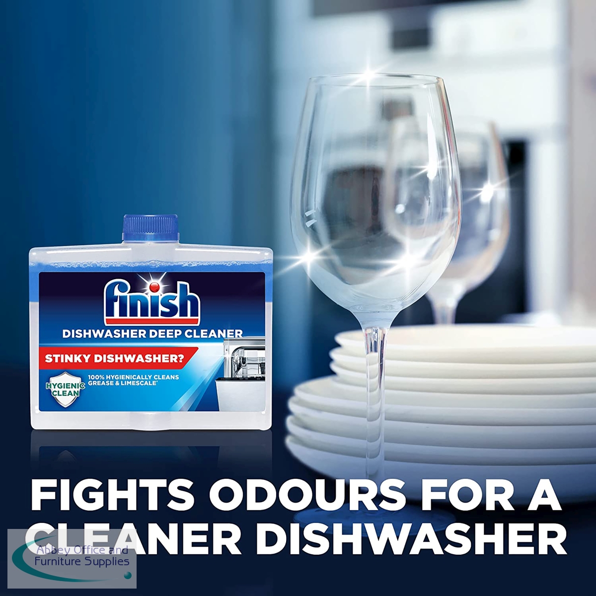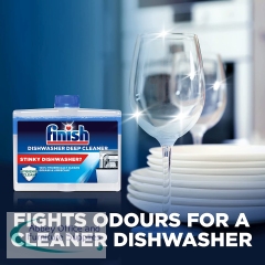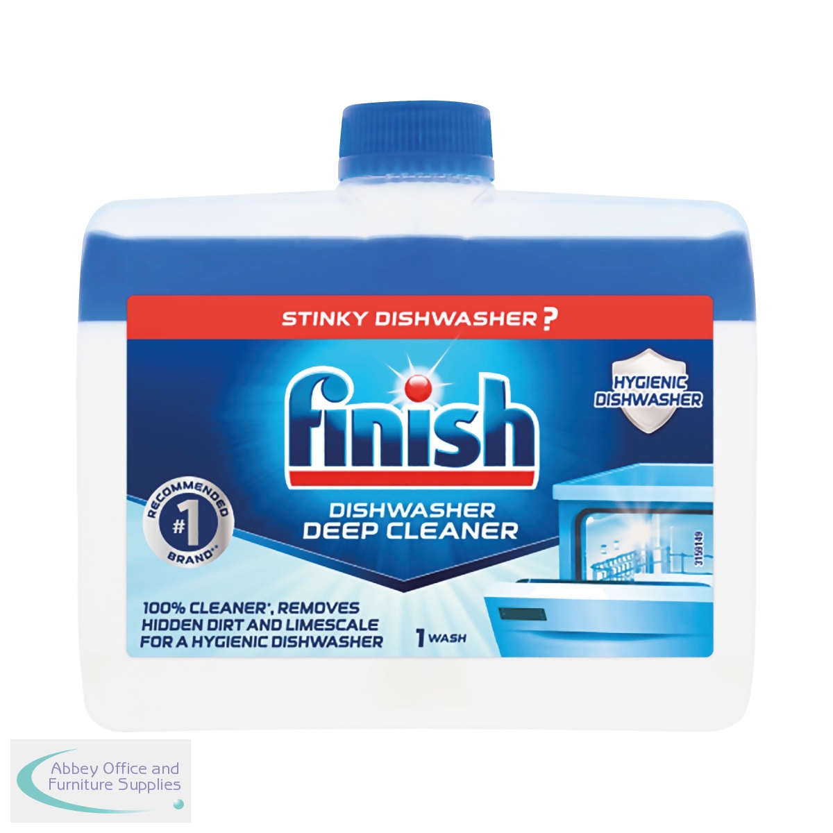 For a hygienically clean dishwasher, this Finish dishwasher deep cleaner cleans the hidden parts, keeping it fresh and free from grease and limescale. Simply peel off the sticker from the bottle cap, turn upside down, place it into the dish rack and set off a cycle. 1 wash. Bottle contains 250ml.