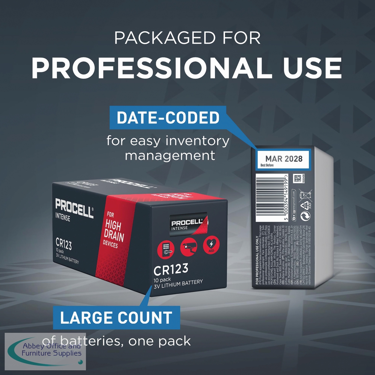 DU16339 - Procell Intense High Power Lithium CR123 3V Battery (Pack of 10) 5000394163393