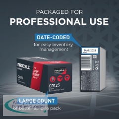 The Procell Lithium Intense Power CR123 industrial batteries are designed to provide reliable and safe power in professional equipment. Design, safety, manufacture and qualification follow Procell's stringent battery standards, which conform to ANSI and IEC standard requirements. Packed inexpensively. Child-proof packaging: anti-counterfeiting packaging with double blister so that it cannot be opened by children without scissors. Operating temperatures from -20 to 60 degrees Celsius.