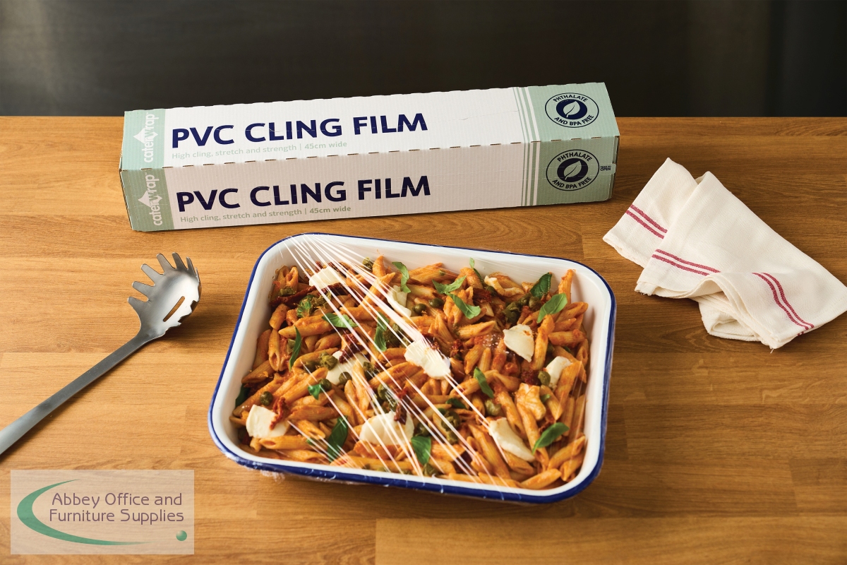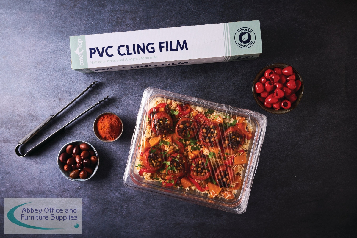 Caterwrap for the caterers who prefer to traditional cardboard cutter boxes. Superior cling, stretch and strength. Use to reduce food waste and improve shelf live. Preserves food and protects flavour. The carton and the core are recyclable. This roll of cling film measures 45cm wide and 300 meters length.