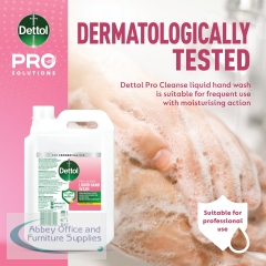 This bulk fill 5 litre bottle of Dettol Pro Cleanse hand wash soap is dermatologically tested and is suitable for frequent use. This moisturising hand wash has a pleasant citrus fragrance. A 5 litre bottle is a cost effective way to keep washroom dispensers topped up and ready for use, ensuring good hand hygiene. This promotion offer is for 2 bottles of Dettol Pro Cleanse Hand Wash citrus fragrance and a free Dettol Pro Solutions 1 litre soap dispenser. While stocks last.
