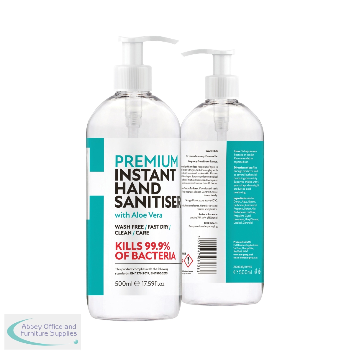 This premium alcohol hand sanitiser with aloe vera is quick drying, pH neutral, and with added aloe vera is kind to hands, making it a safe way to ensure that your hands are free from harmful germs. This pack contains six 500ml bottles with a pump top. This hand sanitiser contains 70% alcohol.