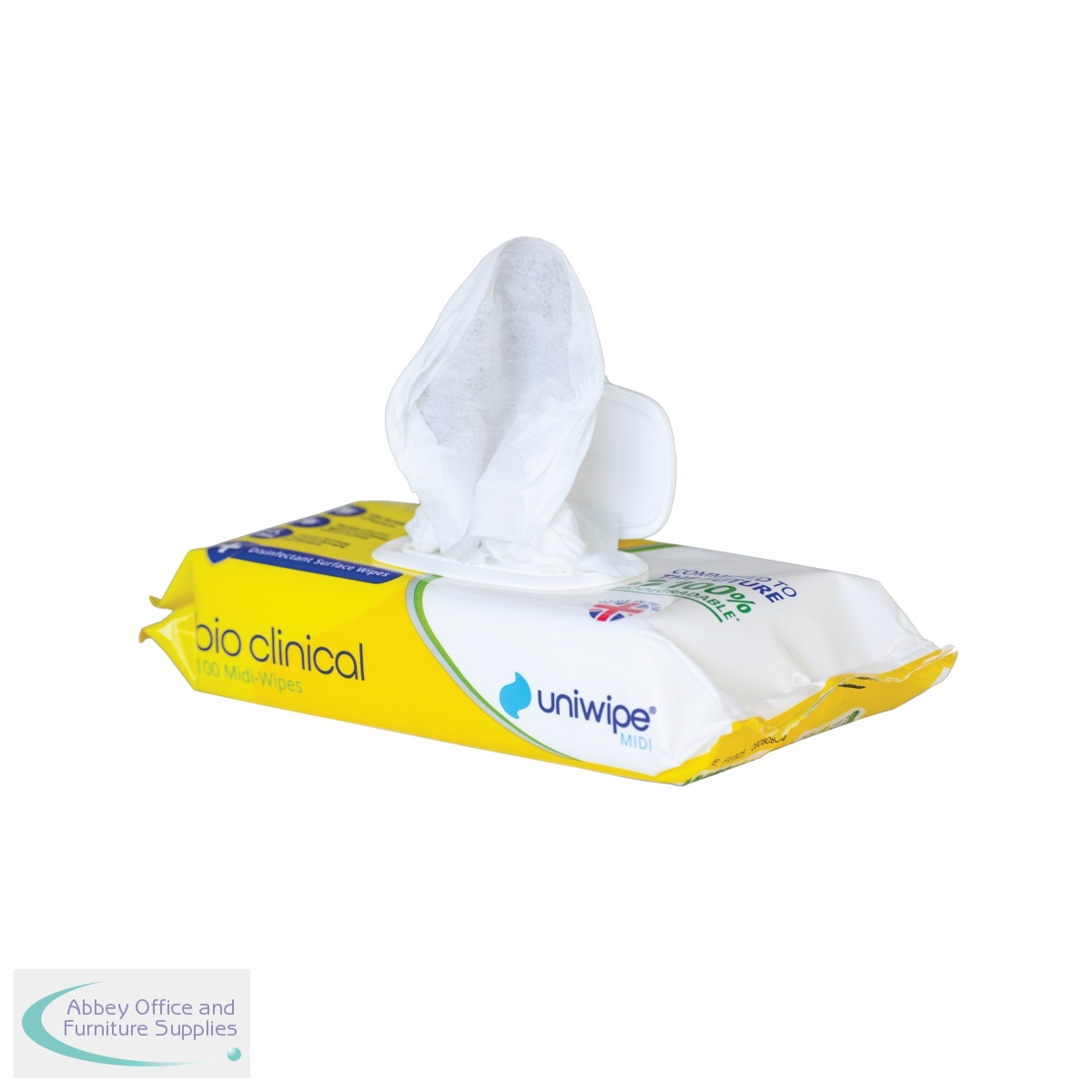 UW47144 - Uniwipe Bio Clinical Midi Wipes Biodegradable Wipes (Pack of 100) 1081