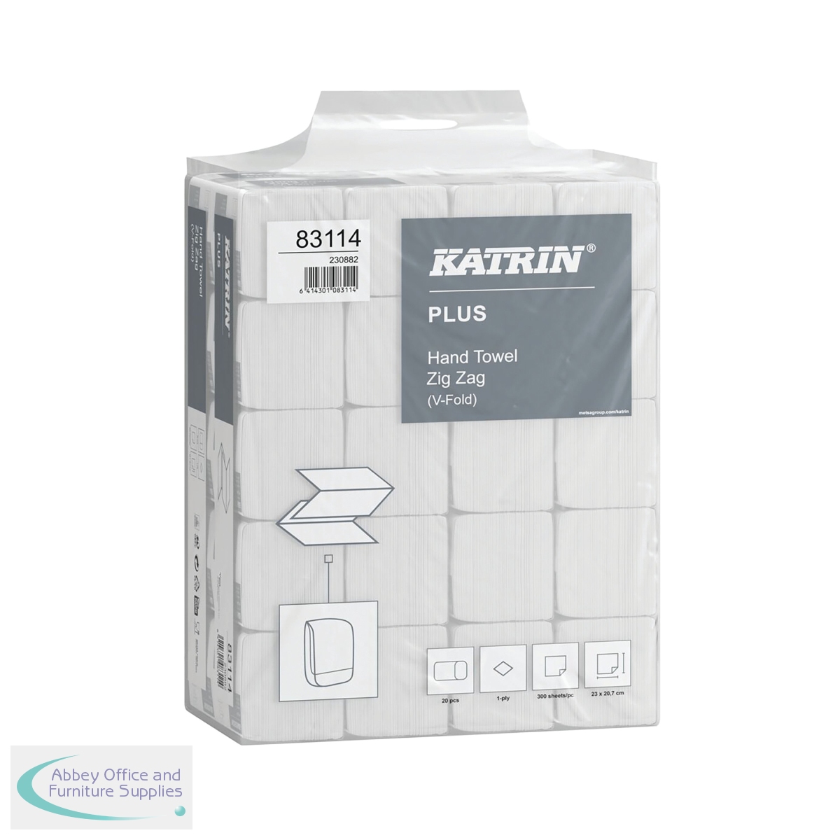 KZ08311 - Katrin Plus Hand Towels V-Fold 1-Ply 300 Sheets (Pack of 6000) 83114