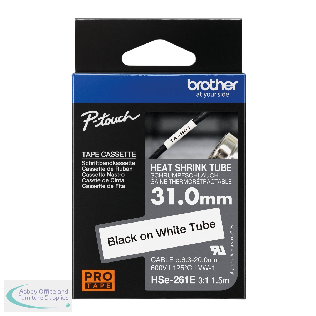 BA82286 - Brother HSe Heat Shrink Tube Tape Cassette 31.0mm x 1.5m Black on White HSe261E