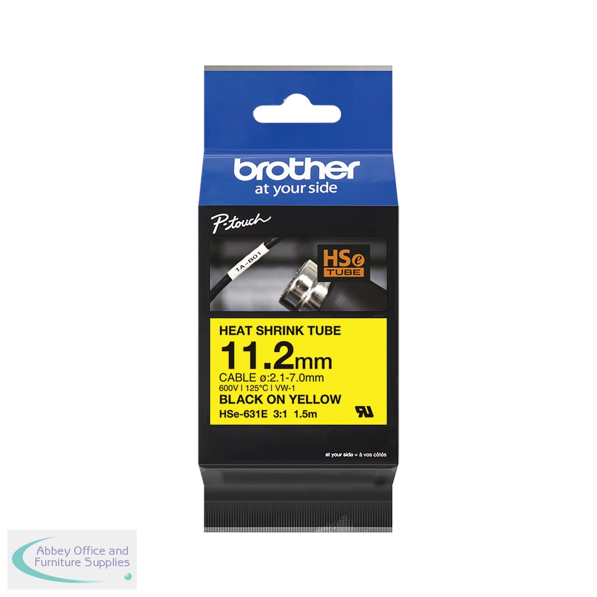 BA82292 - Brother HSe Heat Shrink Tube Tape Cassette 11.2mm x 1.5m Black on Yellow HSe631E