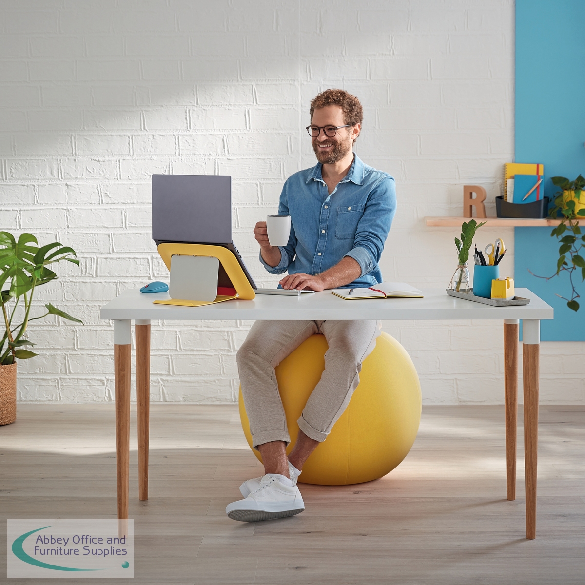 The Leitz Ergo Cosy Active Sitting Ball encourages back and core muscle movement, improving posture and relieving back pain. Ideal for use as a desk chair to keep you active while you work, a yoga ball or for back stretching, physiotherapy and gym ball workouts. Quick and easy to inflate, it comes with a hand pump, 2 plugs and has a durable carry handle making it easy to carry from room to room. With its minimalist design, this stylish exercise ball chair will improve health and wellbeing by creating the perfect active working set-up.