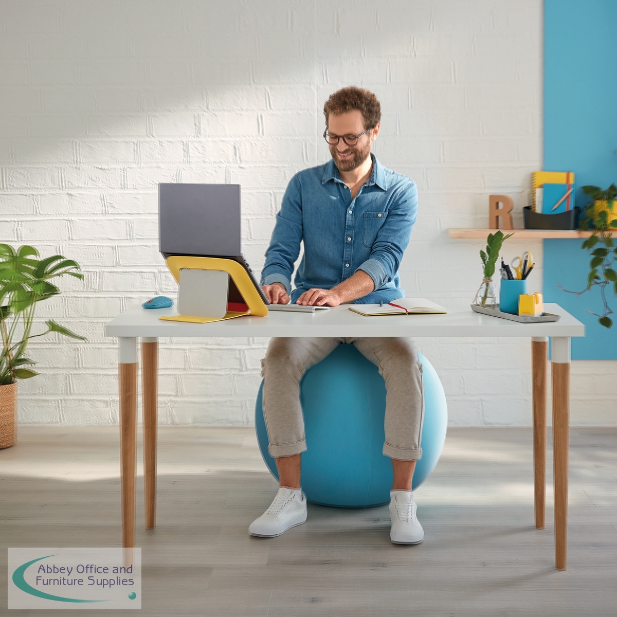The Leitz Ergo Cosy Active Sitting Ball encourages back and core muscle movement, improving posture and relieving back pain. Ideal for use as a desk chair to keep you active while you work, a yoga ball or for back stretching, physiotherapy and gym ball workouts. Quick and easy to inflate, it comes with a hand pump, 2 plugs and has a durable carry handle making it easy to carry from room to room. With its minimalist design, this stylish exercise ball chair will improve health and wellbeing by creating the perfect active working set-up.