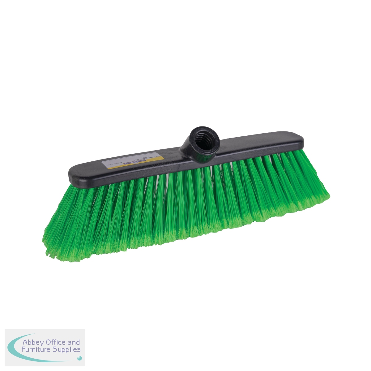 A broom head with soft bristles, suitable for use in a domestic or professional environment. Made from 100% recycled grey head with colour coded PET bristles. Fits standard or heavy gauge handle. Available in blue, green, red and yellow.