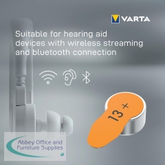 Premium product with the best power supply for hearing aids. Provides high and stable voltage levels. Reliable, long-lasting energy with highest quality and performance allow hearing aid users to hear clearly, communicate effectively and improve their quality of life. The premium batteries provide stable voltage for wireless streaming, enabling a more efficient connection and clear sound with audio devices. All VARTA hearing aid batteries have a high-quality, leak-proof design ensuring safe performance for consumers to enjoy their independence.
