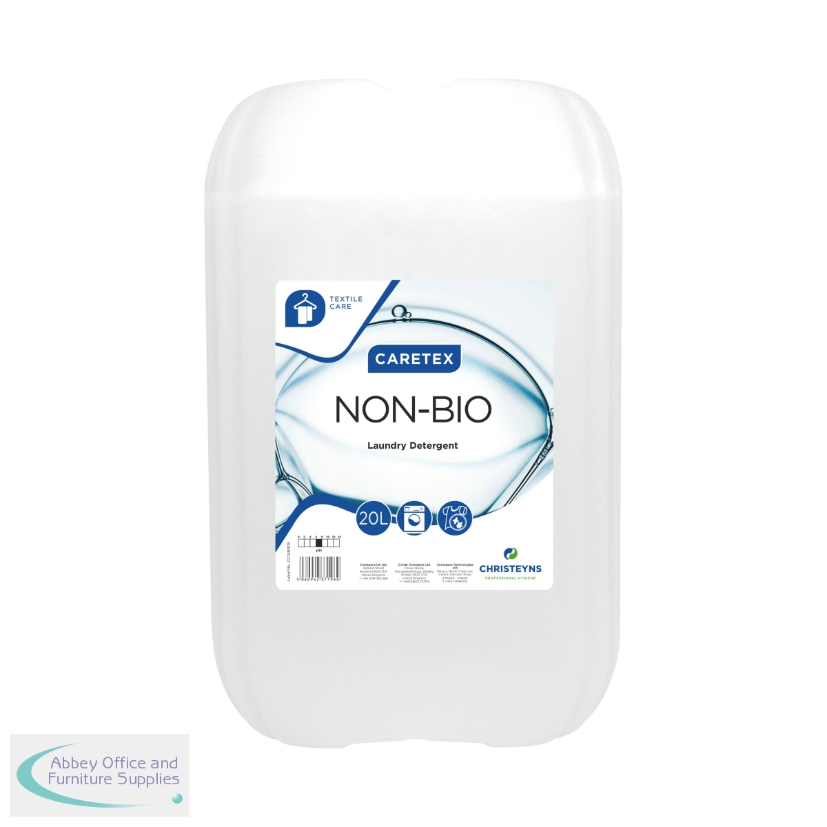 Caretex non-bio is a low alkaline, mild, non-biological detergent which is effective between 30 - 80 degrees Centigrade for both white and coloured fabrics. Free from enzymes, this non-biological detergent is supplied in a 20L carton.