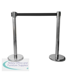 The Stewart Superior Economy Flexi Barrier allows you to guide and control your customers easily. This set comes as a post with retractable tape and a base with a chrome finish.