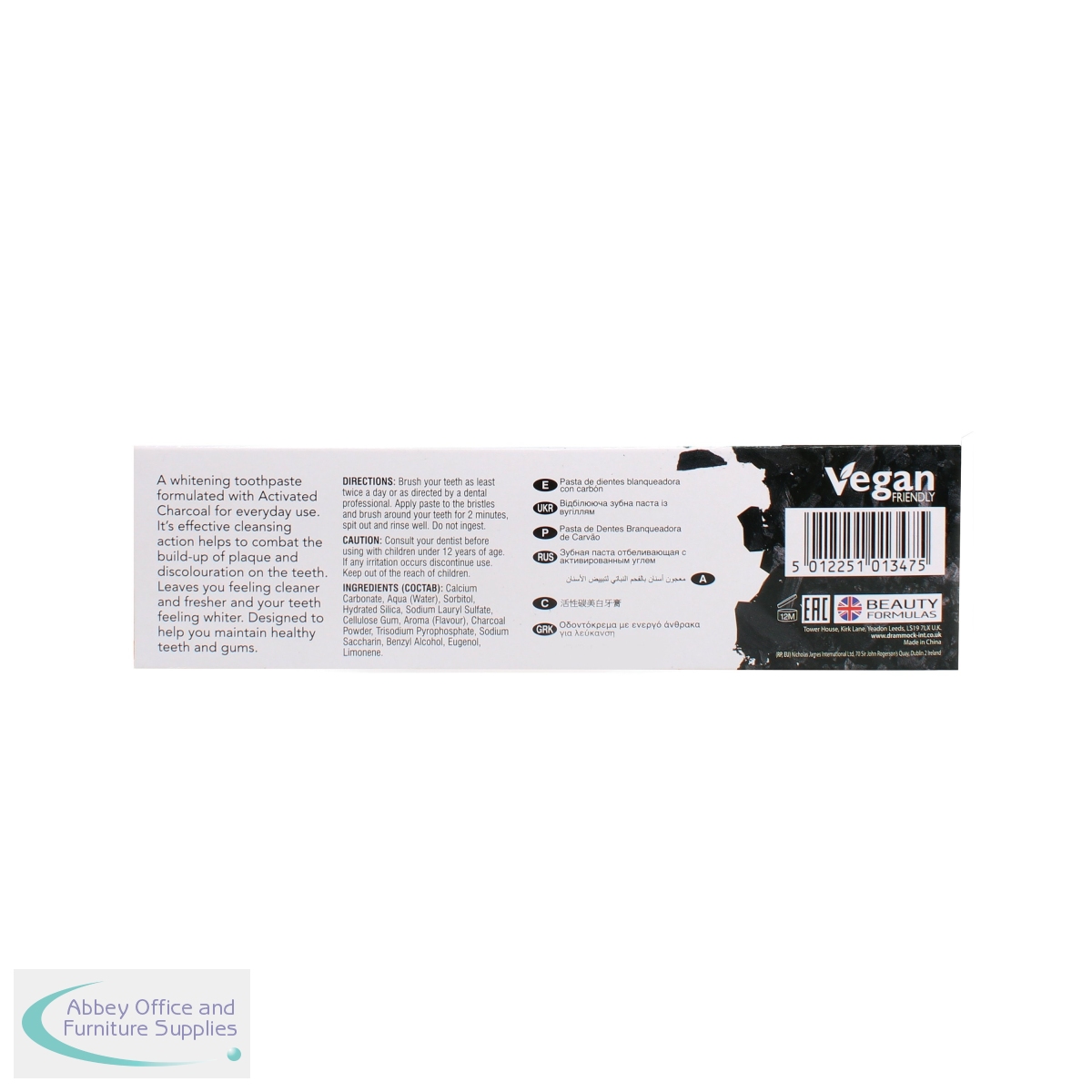 A whitening toothpaste formulated with activated charcoal for everyday use. Effective cleansing action helps to combat the build-up of plaque and discolouration on the teeth. Leaving the mouth feeling cleaner and fresher and teeth whiter. 100ml tube of toothpaste and toothbrush included in the pack. Pack of 12.