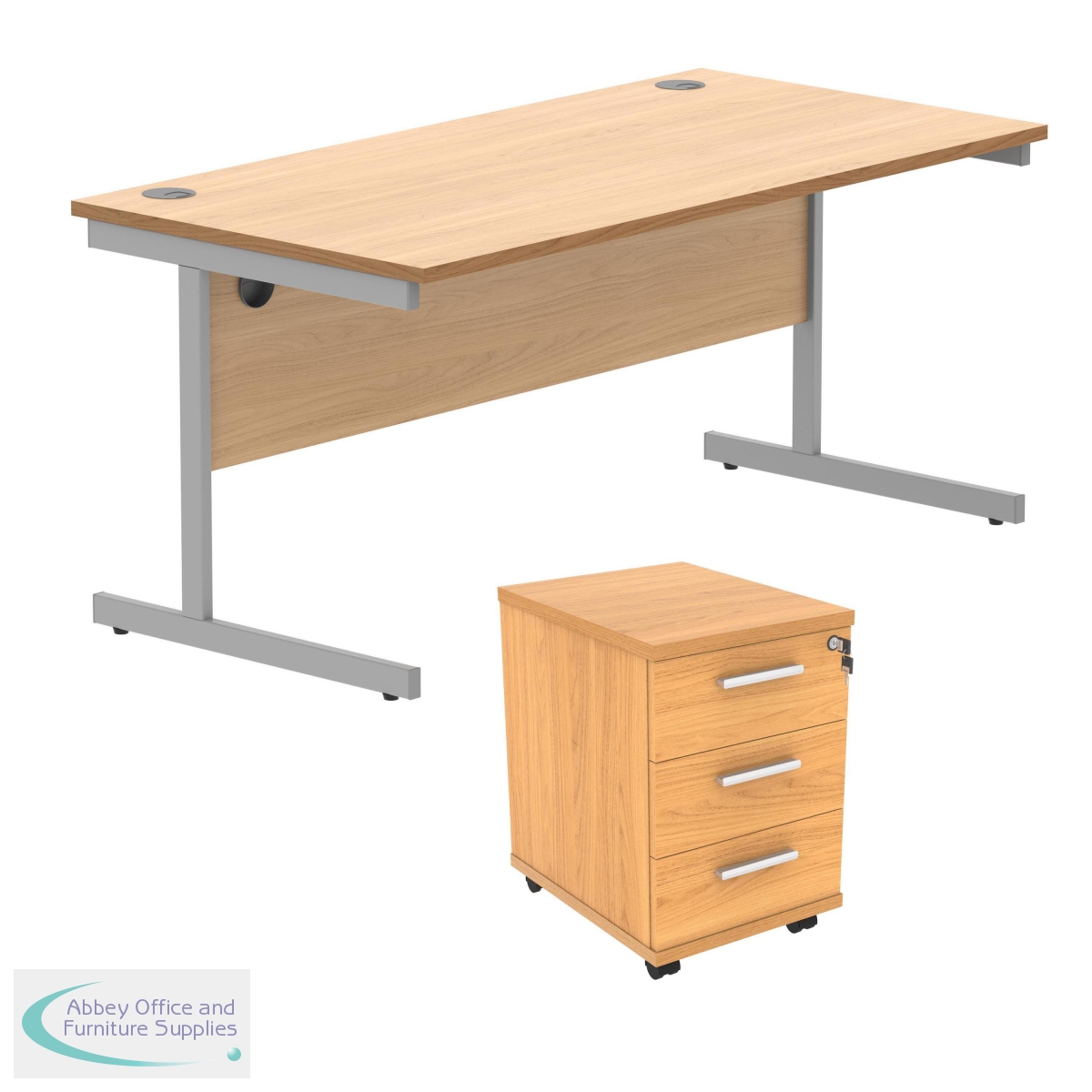 KF803777 - Astin Rectangular Desk 1600x800x730mm +3Drw Under Desk Pedestal Norwegian Beech/Silver KF803777