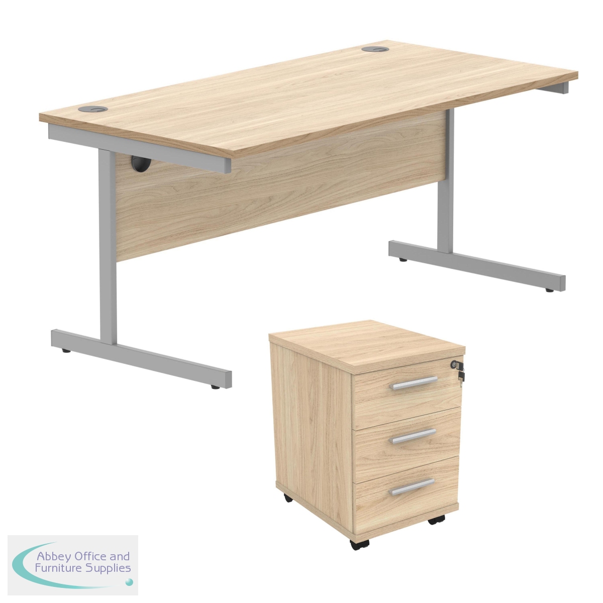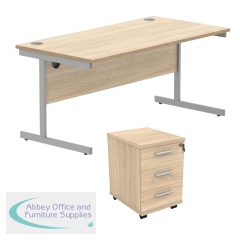 KF803797 - Astin Rectangular Desk +3Drw Mobile Under Desk Pedestal 1680 Canadian Oak/Silver KF803797