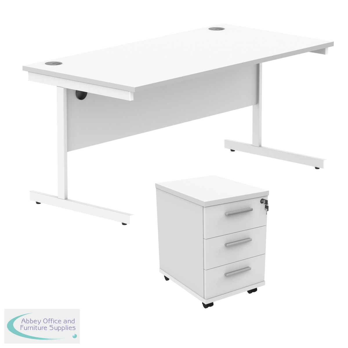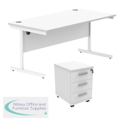 KF803897 - Astin Rectangular Desk 1600x800x730mm +3Drw Under Desk Pedestal Arctic White/Arctic White KF803897