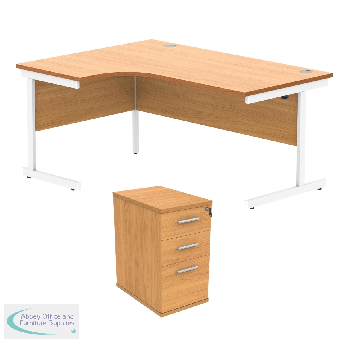 KF820027 - Astin Radial Left Hand SU Desk +Desk High Pedestal 1600x1200 Norwegian Beech/Arctic White KF820027