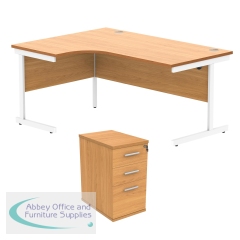 The Astin Radial Left Hand Single Upright Cantilever Desk with Desk High Pedestal is suitable for a range of office environments. This Radial Desk features a modesty panel and a strong cantilever frame for support and stability. It offers easy working access to your computer, as well as ample additional desktop space. The desk high pedestal offers convenient storage.