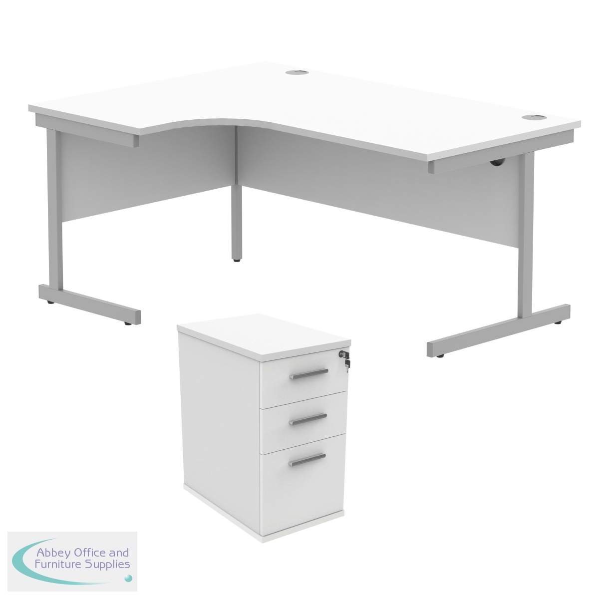 KF820087 - Astin Radial Left Hand SU Desk +Desk High Pedestal 1600x1200 Arctic White/Silver KF820087