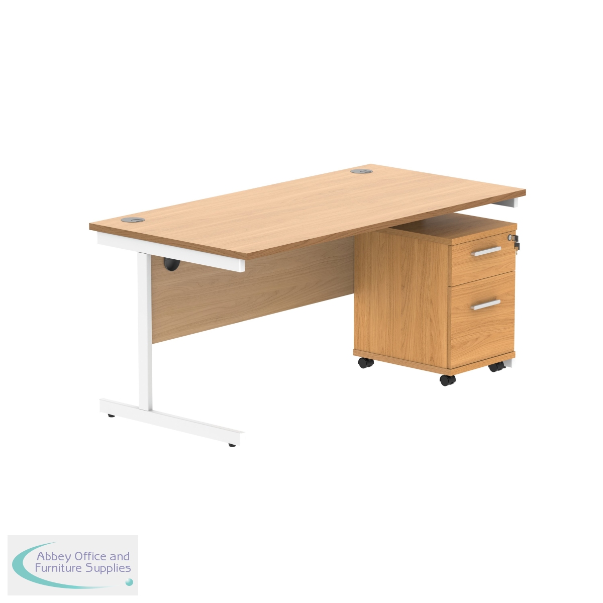 KF820177 - Astin Rectangular Desk 1600x800x730mm +2Drw Under Desk Pedestal Norwegian Beech/White KF820177