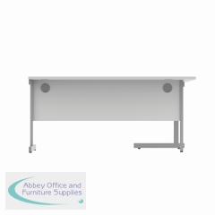 KF824169 - Astin Radial Left Hand SU Cantilever Desk 1600x1200x730mm Arctic White/Silver KF824169