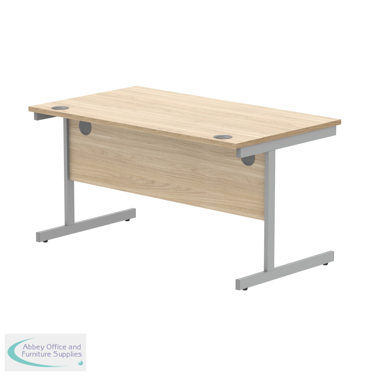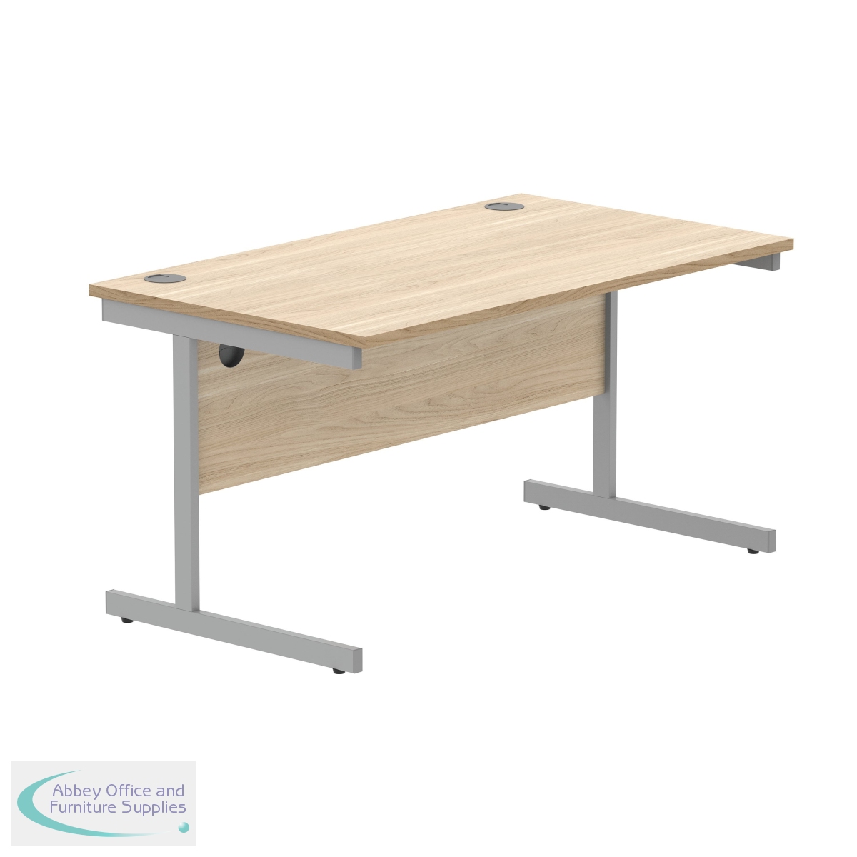 KF803288 - Astin Rectangular Single Upright Cantilever Desk 1400x800x730mm Canadian Oak/Silver KF803288