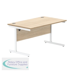 KF803487 - Astin Rectangular Single Upright Cantilever Desk 1400x800x730mm Canadian Oak/Arctic White KF803487