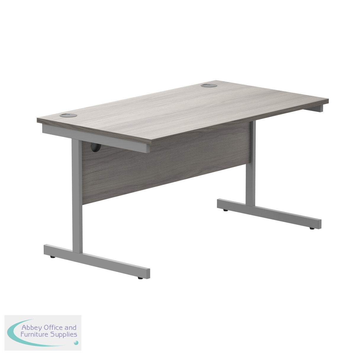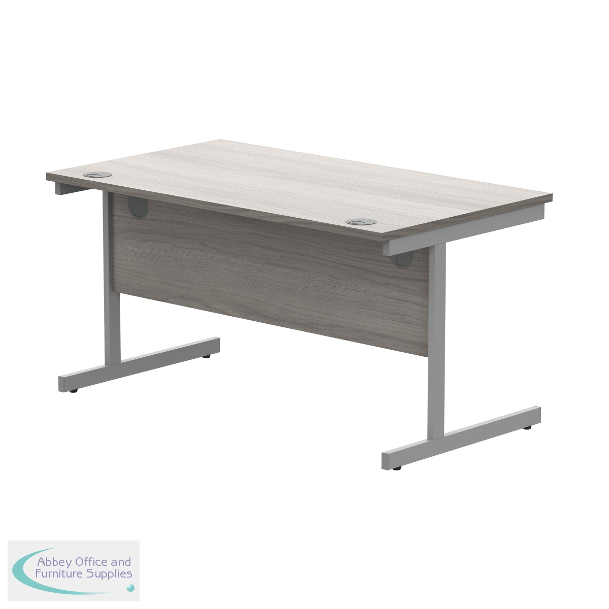 KF803687 - Astin Rectangular Single Upright Cantilever Desk 1400x800x730mm Alaskan Grey Oak/Silver KF803687